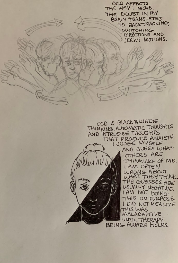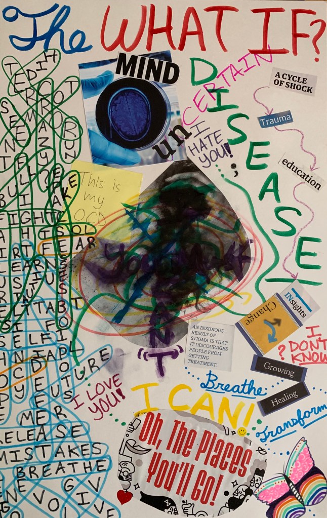 As part of a research study I conducted, people with OCD created artwork to express their experiences of OCD to clinicians (images depicted below). A short film was also created to educate clinicians about this condition from the perspectives of people who live with OCD (see link to film below). Results of this study demonstrate that clinicians struggle to identify common symptoms of OCD but benefit greatly from exposure to clients’ lived experiences and art-based advocacy methods.